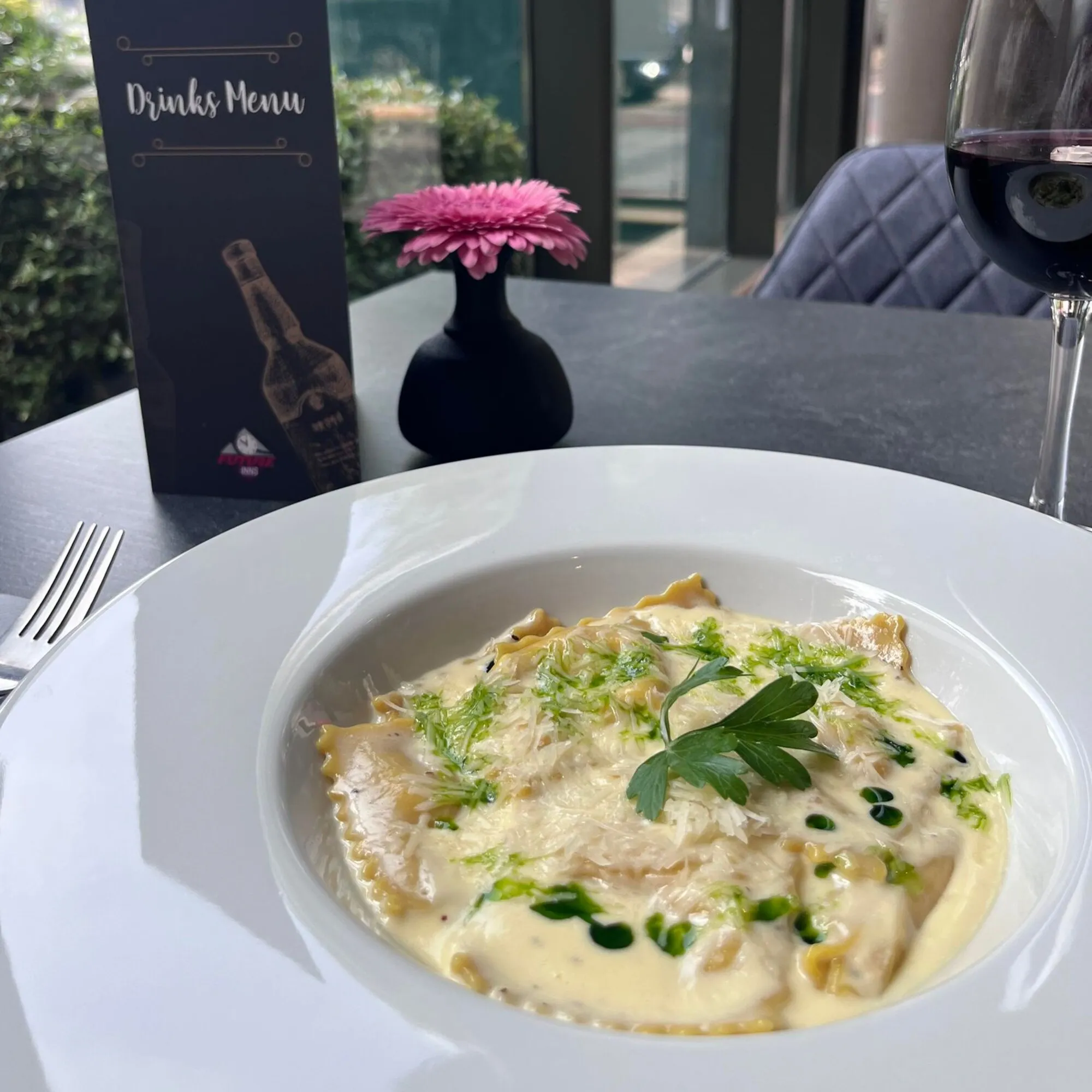 For those seeking a more indulgent experience, the Caramelised Pear & Goat's Cheese Ravioli is a standout. The creamy Grana Padano sauce complements the sweetness of the caramelised pear and the tangy goat's cheese, creating a mouth-watering combination that feels like pure comfort on a plate. This staff favourite is sure to make you feel pampered and indulged.