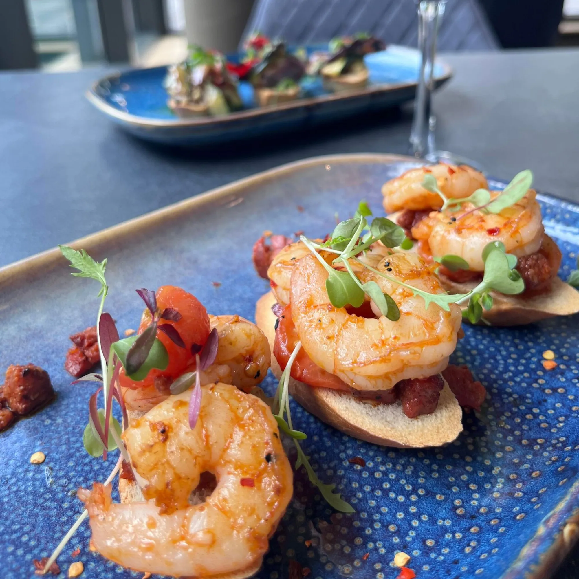 Why not try the Prawn and Chorizo Bruschetta for something with a bit more kick? Juicy prawns paired with the smoky heat of chorizo served on a crisp bruschetta offer a fantastic balance of flavours and textures.