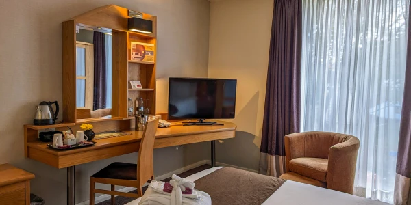 The Superior Double Rooms have two double beds, or choose the City King Rooms, some of which interconnect with the City Twin Rooms. Each bedroom has free Wi-Fi, flat-screen TVs, a desk and workspace, and a laptop safe. Added comforts such as complimentary robes, tea and coffee-making facilities, and filtered water enhance the overall experience. The biggest perk of staying at our Bristol hotel is the free parking at Cabot Circus, directly across the road from Future Inns.