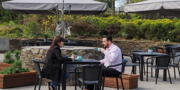 The outdoor sun terrace is an inviting space ideal for fresh-air mingling, al fresco refreshments, lunch, or group sessions during warmer weather. Complete with giant umbrellas and garden seating, it's a favourite for relaxed social interactions between meeting sessions.